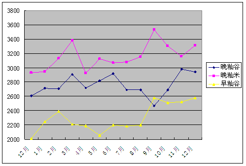 12月份本网交易主要以晚籼谷采购交易为主,本网交易量与去年同期相比增加了3.56%。本月本网稻米交易量相对较少,价格主要以稳为主,部分品种价格有小幅波动。