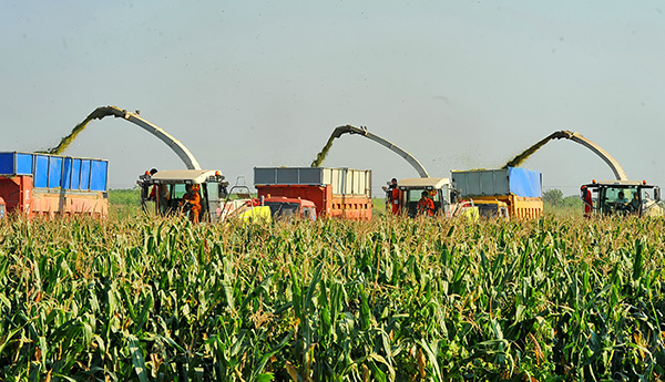 连日来,河北省沧州市中捷友谊农场的6万亩青贮玉米进入收割期,当地组织大型农机投入收割工作中,为农场奶牛养殖基地饲养的2万多头奶牛准备越冬“口粮”。